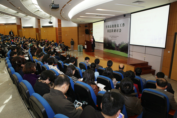 2015年12月10日至11日,中国高等教育学会校友工作研究分会第二十二次研讨会在中山大学隆重举行,来自全国300多所高校的近370名校友工作者参加了会议,会议由研究分会秘书长、浙江大学校长助理、校友总会副会长张美凤主持。我校校友总会秘书处宁小花参加了此次研讨会,与参会同行代表积极交流。