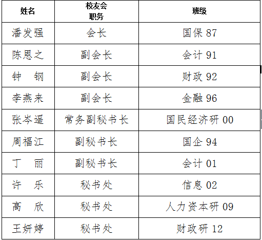 2009年8月下旬,为迎接母校建校60年华诞,更好地开展校友会工作,在校友总会领导李玉书、梁勇、安秀梅、南琪老师的光临指导和支持下,安徽校友会举办联谊会,起草通过了校友会章程,调整了安徽校友会相关人员名单,形成了如下中央财经大学安徽校友会新的领导班子:会长:缪学刚,副会长:李光龙、鲍习生、刘胜海,秘书长:刘胜海,副秘书长:王召远、周福江、钟钢、鲍来祥、潘发强、潘峰。新一届领导班子表示:在母校校友会的指导下,努力工作,踏实办事,起到与母校沟通,与校友沟通的桥梁作用,为校友办实事,办好实事。会上,安徽校友会还特别向校友总会推举了丁丽和吴伟两位优秀校友为中央财经大学校友大使。